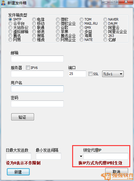 添加发件箱时,右下将出现新的一栏,供你绑定代理IP