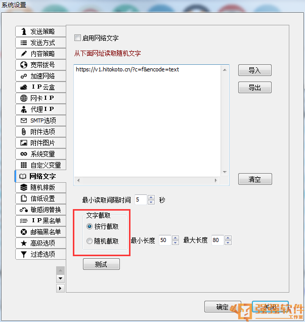 5. 升级网络文字功能,现在可以选择按行截取或者随机截取