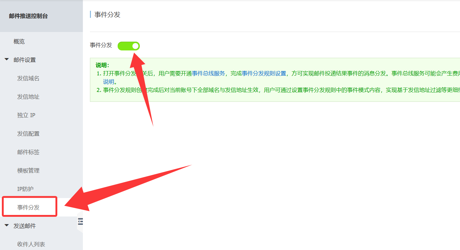 接下来我们需要打开“事件分发”功能以支持日志分析和事件通知