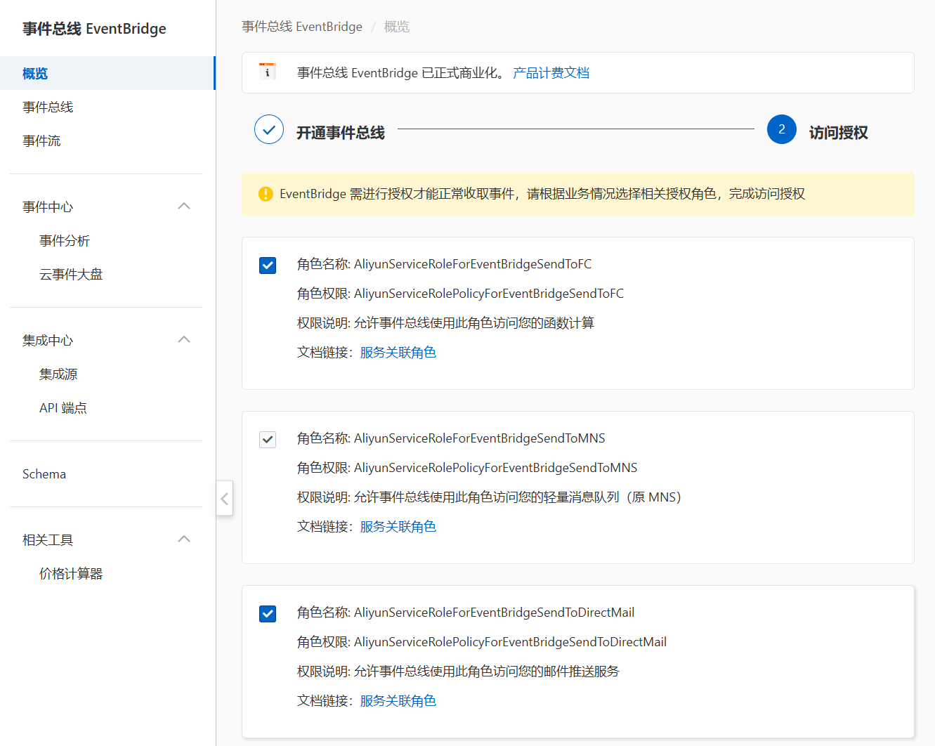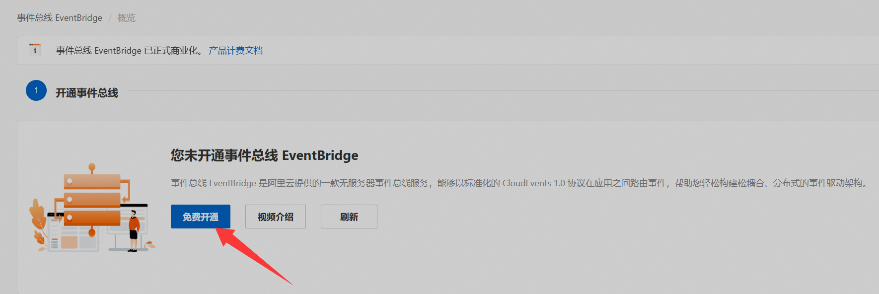 等待1-5分钟,阿里云将为你开通“事件总线”服务