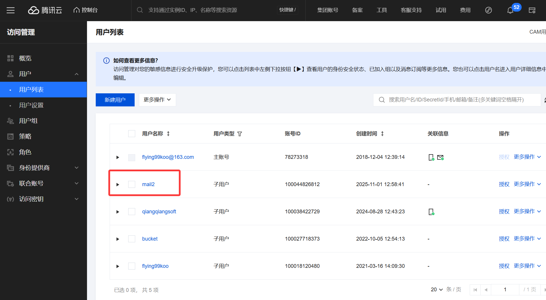 接着我们在“用户列表”中找到刚才创建的用户,点击用户名称进入详细设置