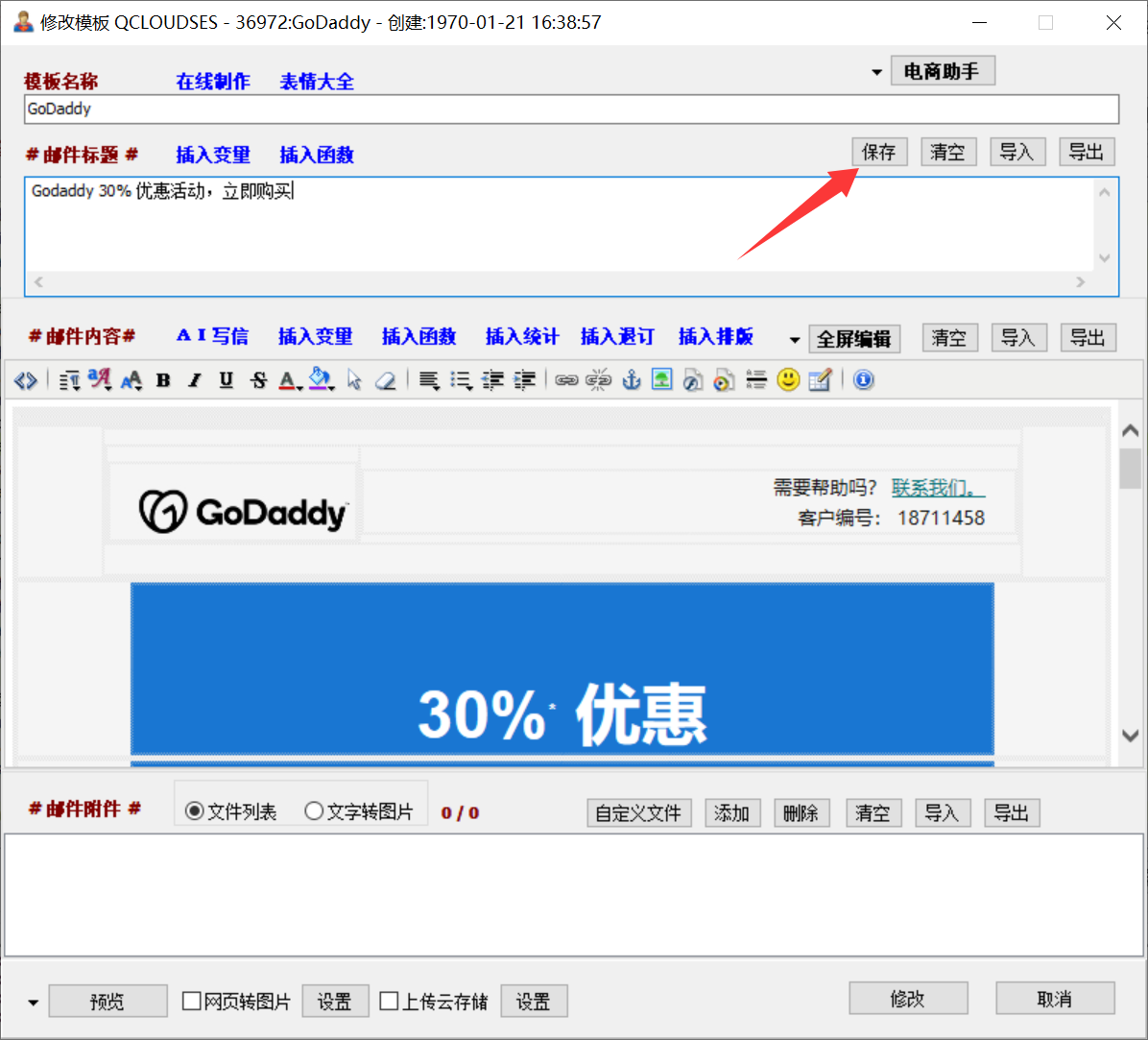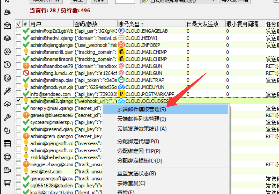 由于腾讯云默认无法发送本地自定义模版,所以我们需要先创建云端模版,右键刚才创建的发件箱,选择“云端邮件模版管理”