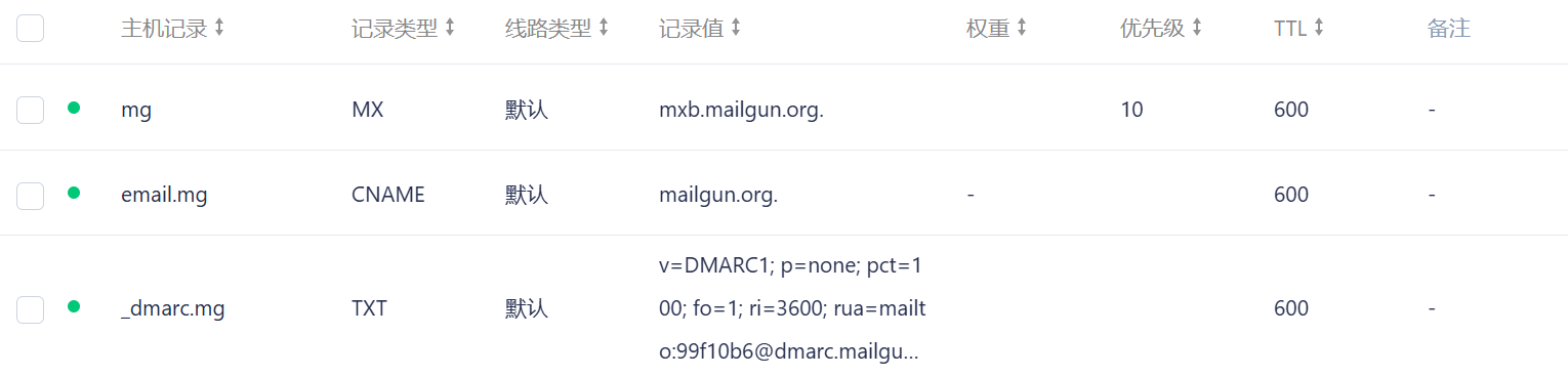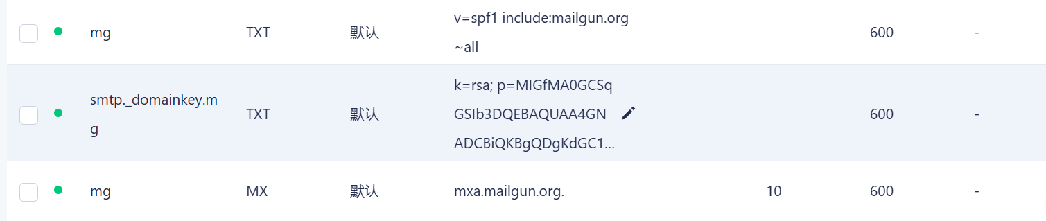 这里以dnspod为例,一共6条记录,如图配置即可